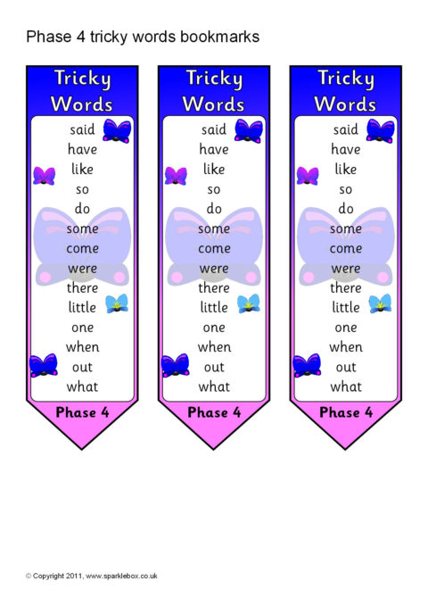 phase tricky words bookmarks sb sparklebox - Image Credit : www.sparklebox.co.uk